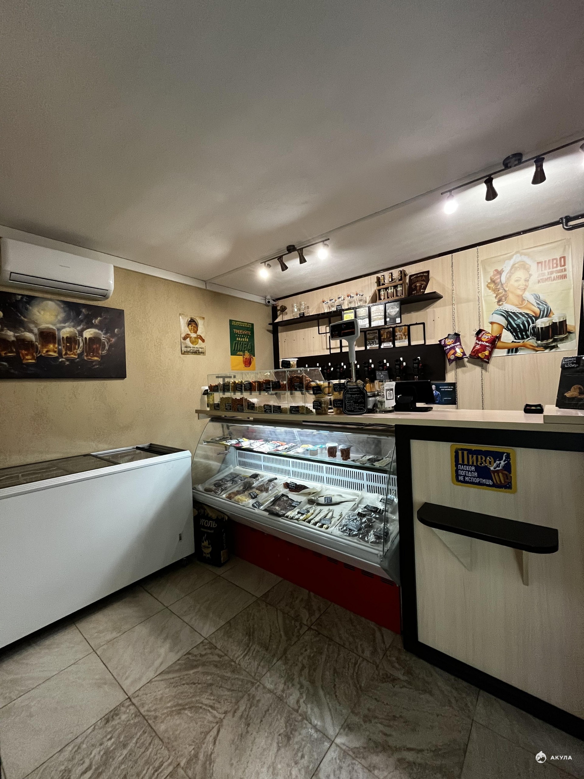 В помещении находится действующий магазин " Крафтового пива" в цену Объекта включена стоимостью всего оборудования: 3 камеры видеонаблюдения со звуком; 2 сплит системы -кондиционеры; барная стойка; витрина с охлаждением; холодильники; Холодильная камера рассчитанная до 30 шт. пивных КЕГ; оборудование с возможностью продажи до 22 сортов пива, современный кассовый аппарат; большое количество закусок и прочее.