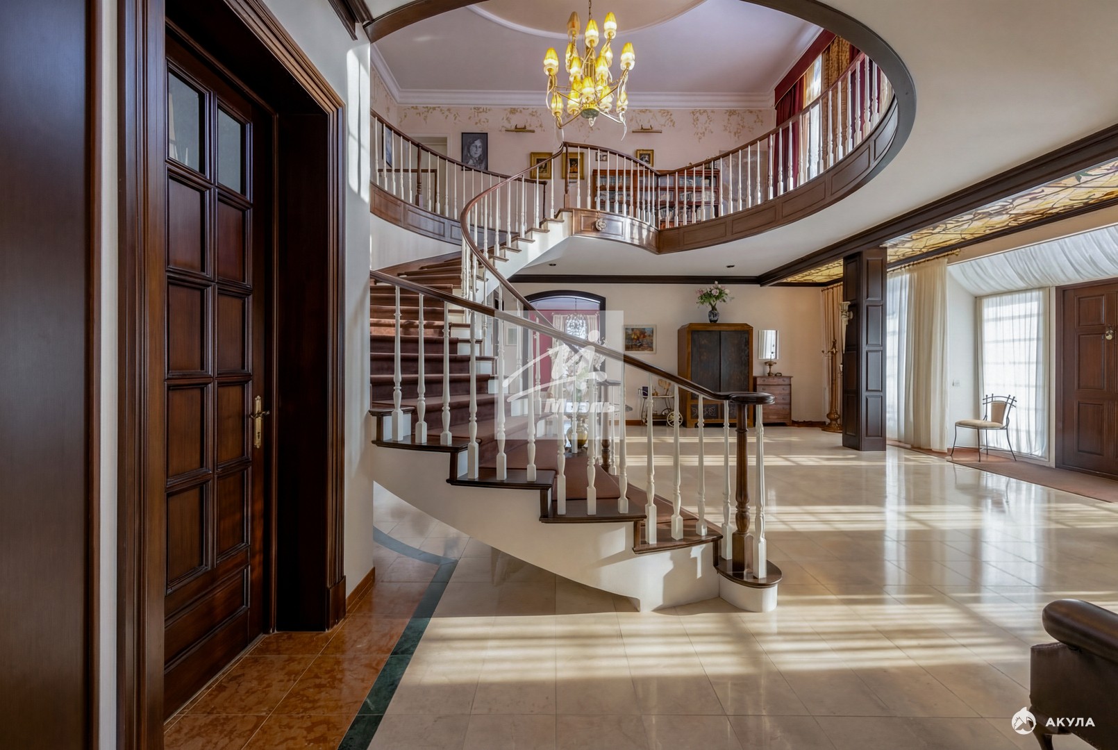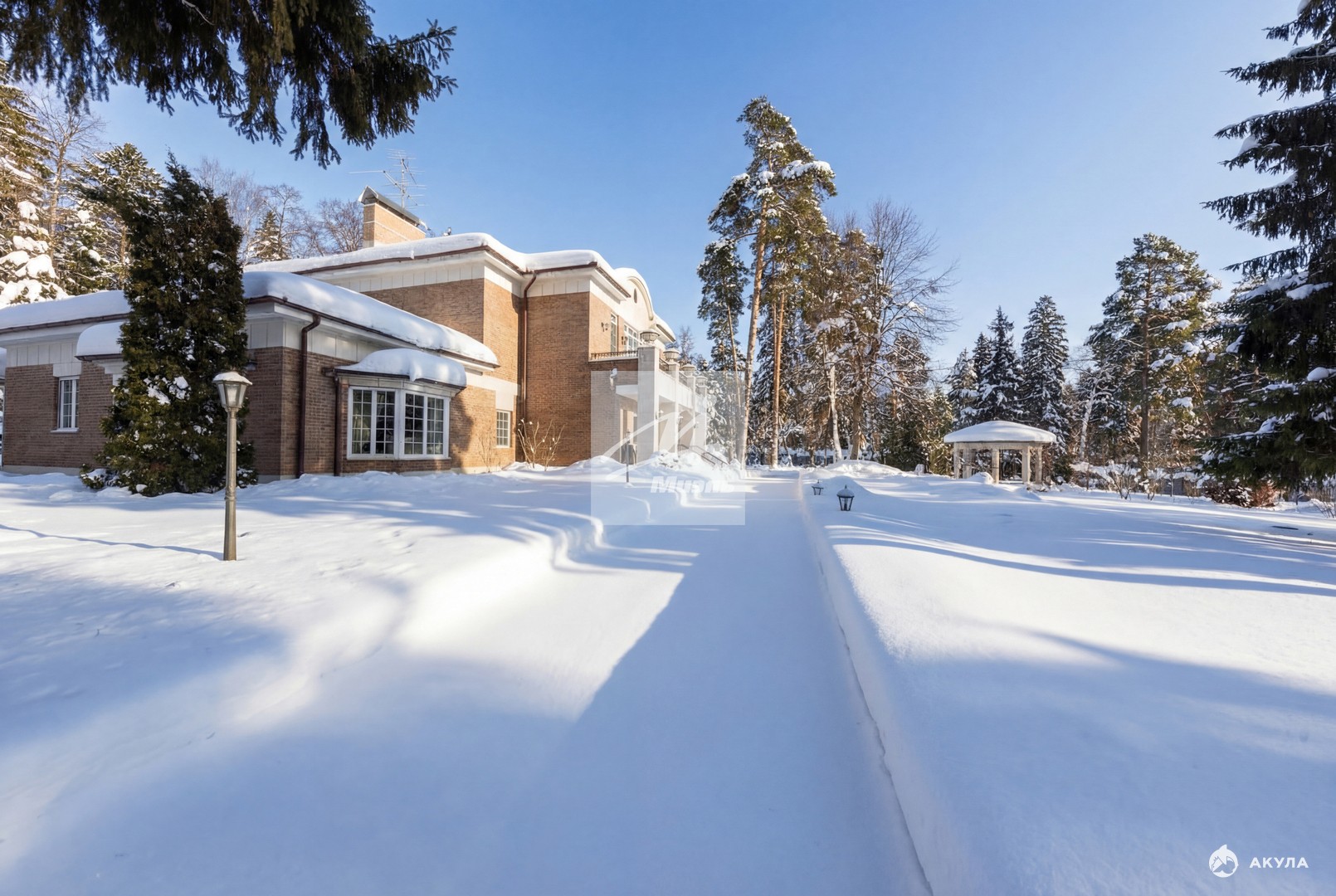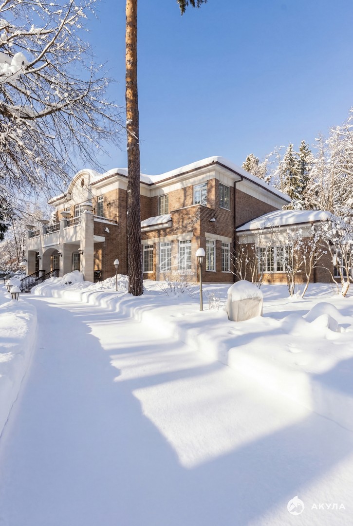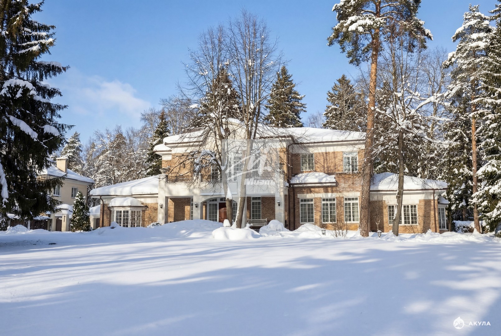 Вашему вниманию предлагается уникальный двухэтажный особняк в английском стиле, расположенный в 30 км от города по Рублево-Успенскому шоссе. Дом построен по проекту европейского архитектурного бюро, комфортная очень удобная планировка. Интерьер оформлен в классическом современном стиле, с подобранной авторской уникальной мебелью и предметами быта. На первом этаже расположена просторная гостиная с камином и зоной для бильярда, предусмотрен выход в зимний сад с разнообразными растениями и кабинет. Большая функциональная кухня с современной техникой граничит с просторной кладовой для хранения продуктов и прочей бытовой утвари. Фантастически красивая лестница ведет на второй этаж, где находится библиотека, зона спален: все четыре спальни приватно расположены в разных сторонах дома. В мастер-спальне имеются просторная гардеробная и ванная комната. Имеется встроенный пылесос. Дом находится в прекрасно-идеальном состоянии. В отдельно стоящем здании располагается гараж на 3 автомобиля и квартира для персонала.На большом участке , находящемся в собственности, с прекрасным ландшафтным дизайном, корабельными соснами, вековыми елями, канадскими кленами расположена пергола, перед домом беседка и фонтан. Сам участок примыкает к лесному массиву, за которым протекает Москва-река.
