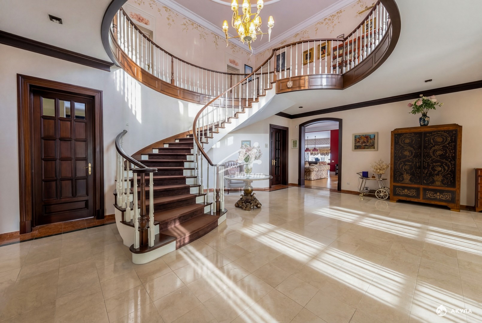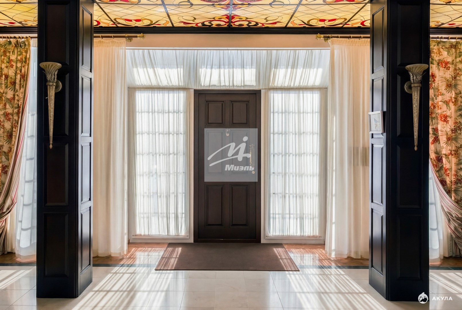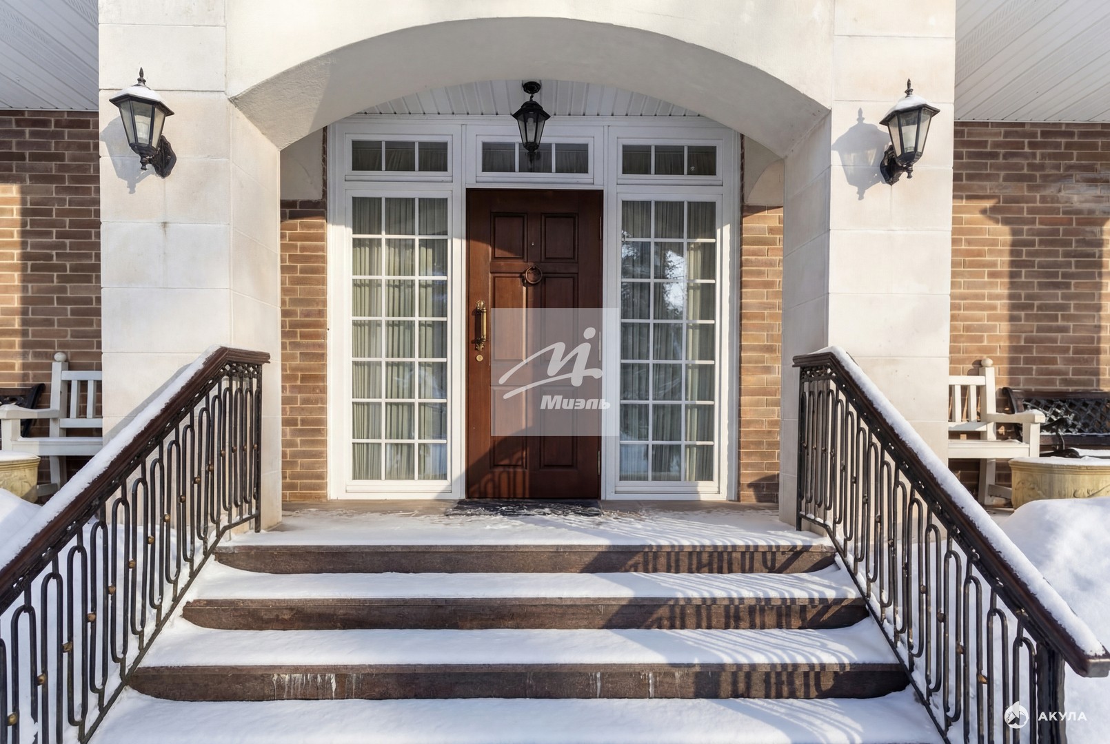 Вашему вниманию предлагается уникальный двухэтажный особняк в английском стиле, расположенный в 30 км от города по Рублево-Успенскому шоссе. Дом построен по проекту европейского архитектурного бюро, комфортная очень удобная планировка. Интерьер оформлен в классическом современном стиле, с подобранной авторской уникальной мебелью и предметами быта. На первом этаже расположена просторная гостиная с камином и зоной для бильярда, предусмотрен выход в зимний сад с разнообразными растениями и кабинет. Большая функциональная кухня с современной техникой граничит с просторной кладовой для хранения продуктов и прочей бытовой утвари. Фантастически красивая лестница ведет на второй этаж, где находится библиотека, зона спален: все четыре спальни приватно расположены в разных сторонах дома. В мастер-спальне имеются просторная гардеробная и ванная комната. Имеется встроенный пылесос. Дом находится в прекрасно-идеальном состоянии. В отдельно стоящем здании располагается гараж на 3 автомобиля и квартира для персонала.На большом участке , находящемся в собственности, с прекрасным ландшафтным дизайном, корабельными соснами, вековыми елями, канадскими кленами расположена пергола, перед домом беседка и фонтан. Сам участок примыкает к лесному массиву, за которым протекает Москва-река.