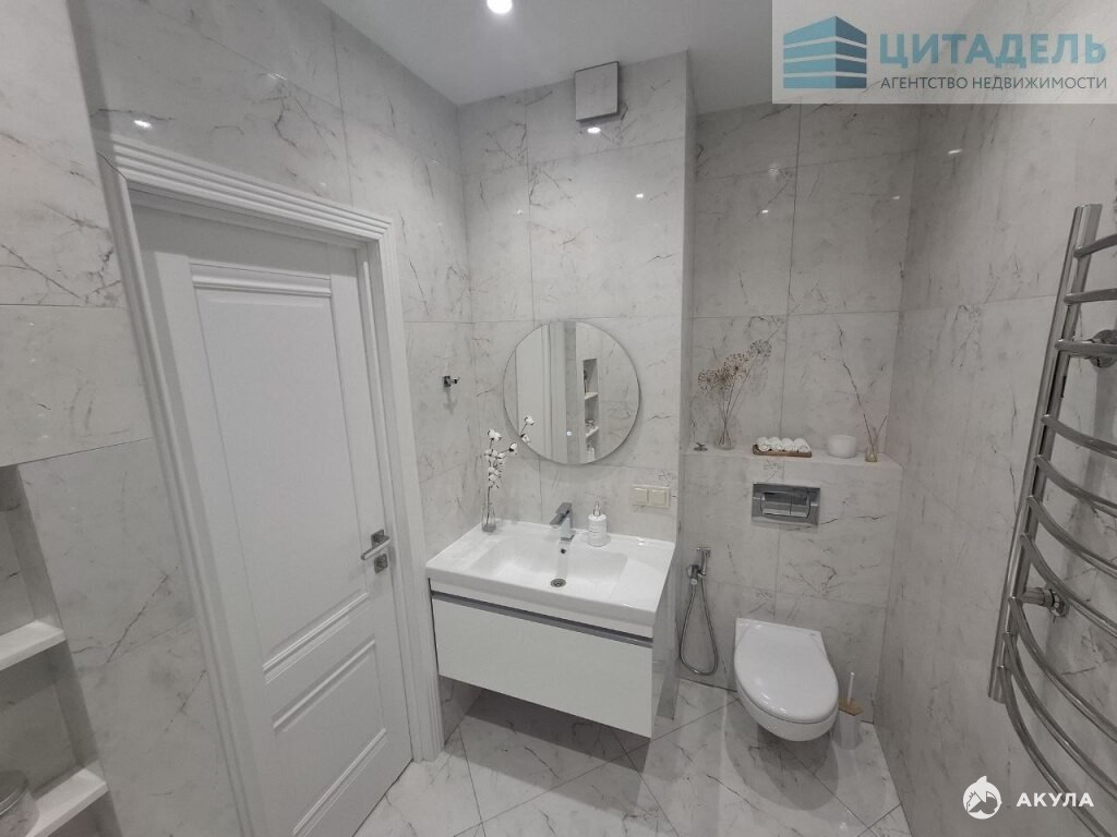 Особенностью квартиры являются два санузла: большой совмещённый с ванной и дополнительный небольшой раздельный туалет с раковиной. Установлены раздельные регуляторы температуры батарей, качественное оборудование для отопления и водоснабжения. Имеется вместительная гардеробная и удобные встроенные шкафы для хранения вещей.