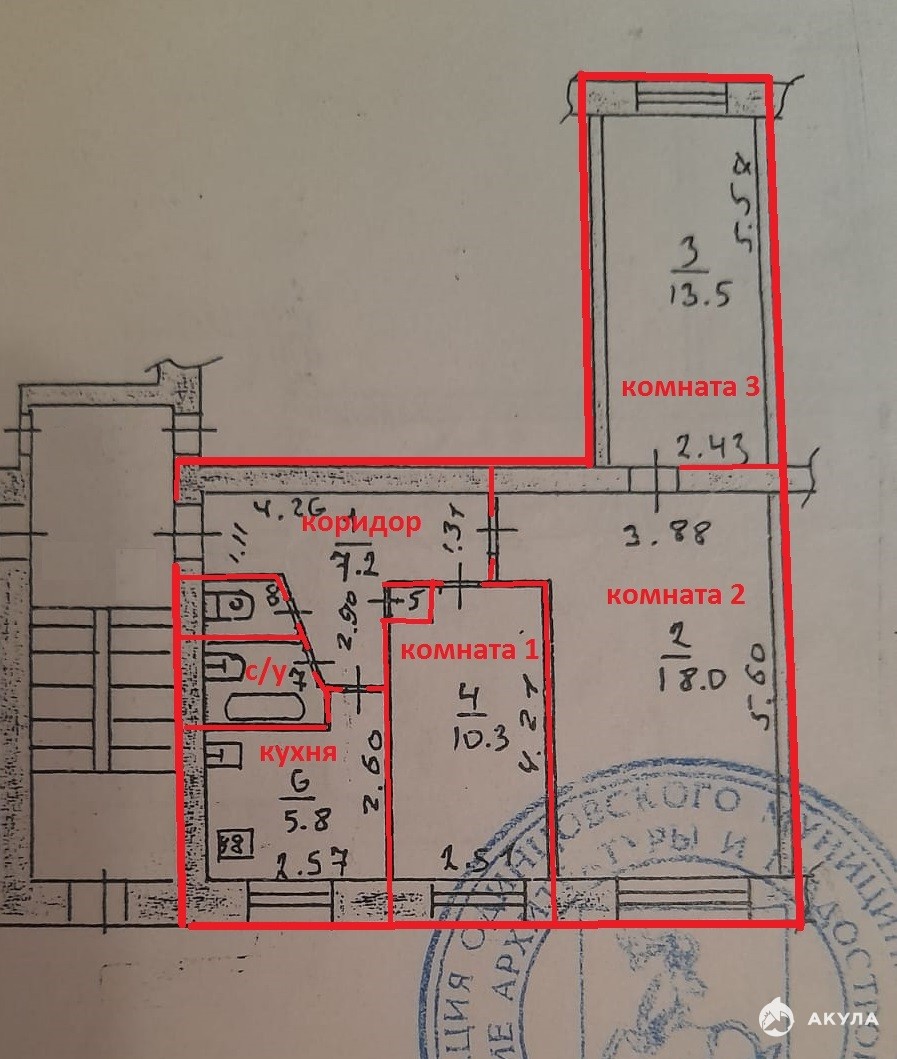 Квартира на высоком 1-ом этаже, 5-ти этажного, кирпичного, теплого дома, без балкона. В квартире сделан евро ремонт летом 2024 года. Общая площадь квартиры 57, 9 кв.м, жилая 41, 8 кв.м., кухня 6 кв.м, комнаты - 10, 3; 13, 5 и 18 кв.м - (одна комната смежная), сан.узел раздельный/изолированный. Стоят счетчики на воду. В квартире были заменены трубы на металлопластик, батареи новые. Вся мебель, та, что есть на фото, остаётся новым собственникам, в том числе и бытовая техника: плита с духовкой, холодильник, стиральная машина. Тараканов и клопов нет. В подъезде делался ремонт - чисто, красиво.