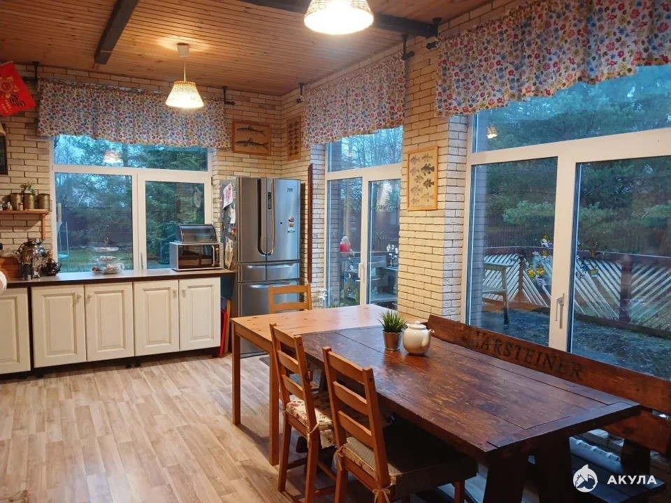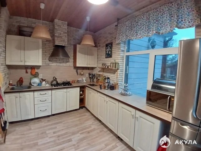 На первом этаже: веранда, прихожая, большая кухня, гостиная, санузел с душевой кабиной. Мебель и необходимая бытовая техника имеется. На втором этаже: четыре спальни - детская, спальня с санузлом и ванной, спальня с санузлом, спальня. Вся обстановка, как на фото.