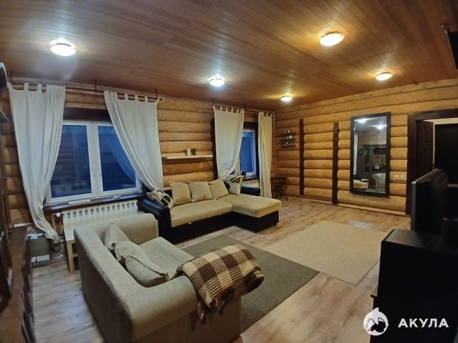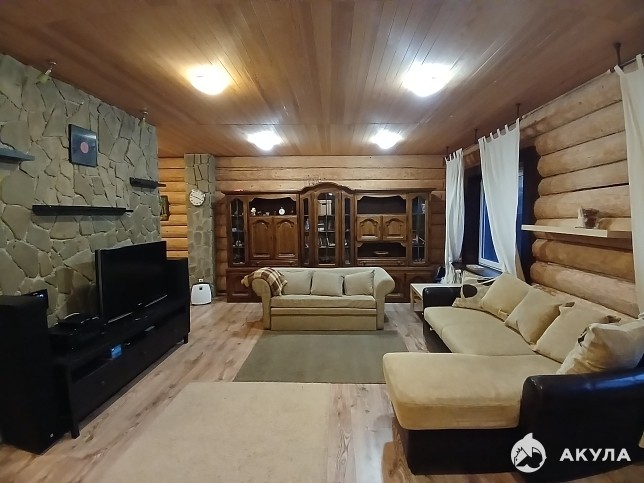 Дом 2-х этажный, теплый, с круглогодичным проживанием, из бревна, коммуникации заведены: электричество 15 кВт, водоснабжение: колодец на участке (техническая вода), родник 300м. (питьевая), канализация: септик, газ - отопление (батареи разведены, газгольдер),